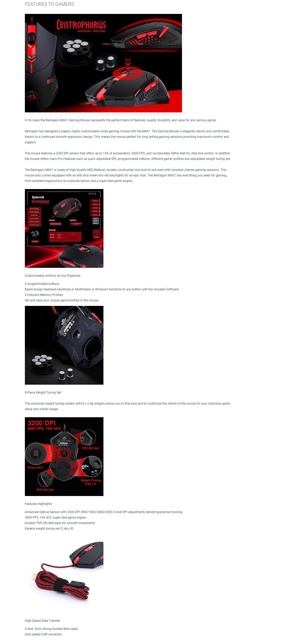 Redragon M709-1 Tiger2 Red LED Gaming Mouse 3200 DPI Wired ...